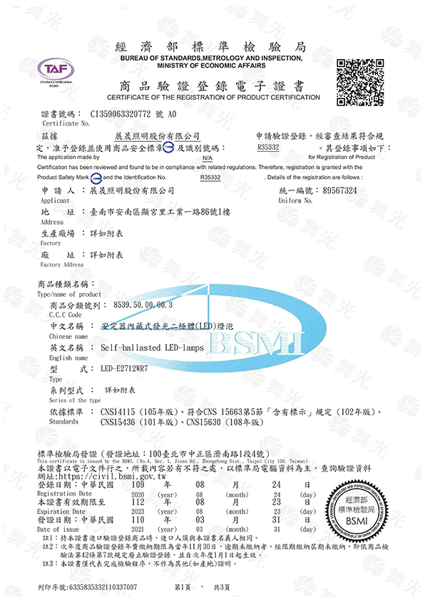 通過國家標準CNS認證舞光產品