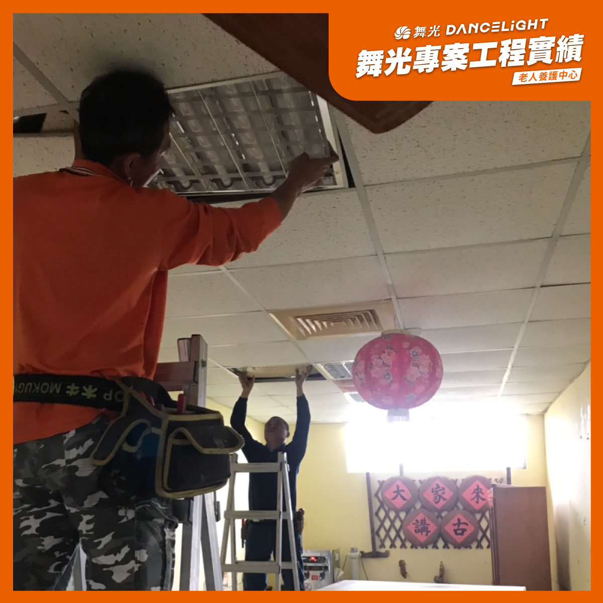 幸好,政府為期三年的節電補助案,讓最需要燈光的老人養護中心汰換老舊的燈,將近500套的輕鋼架,更換起來真是大工程!