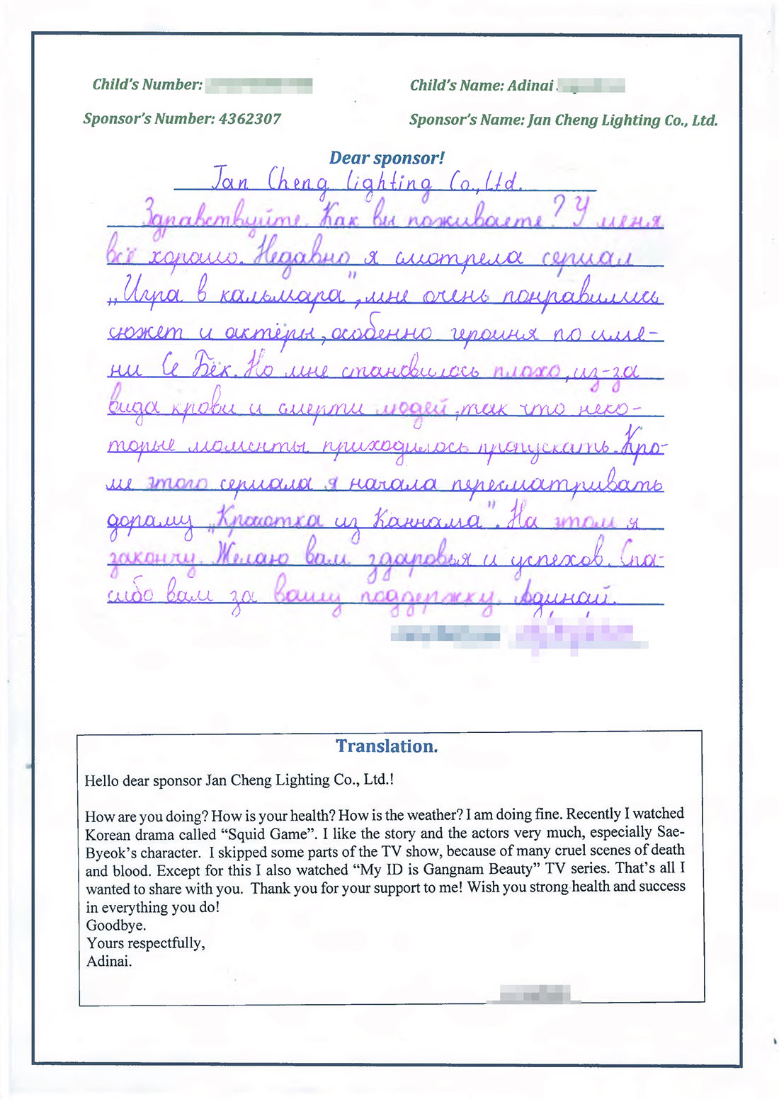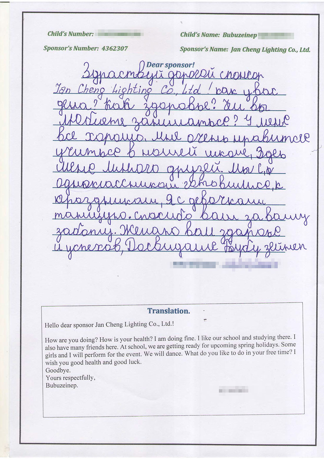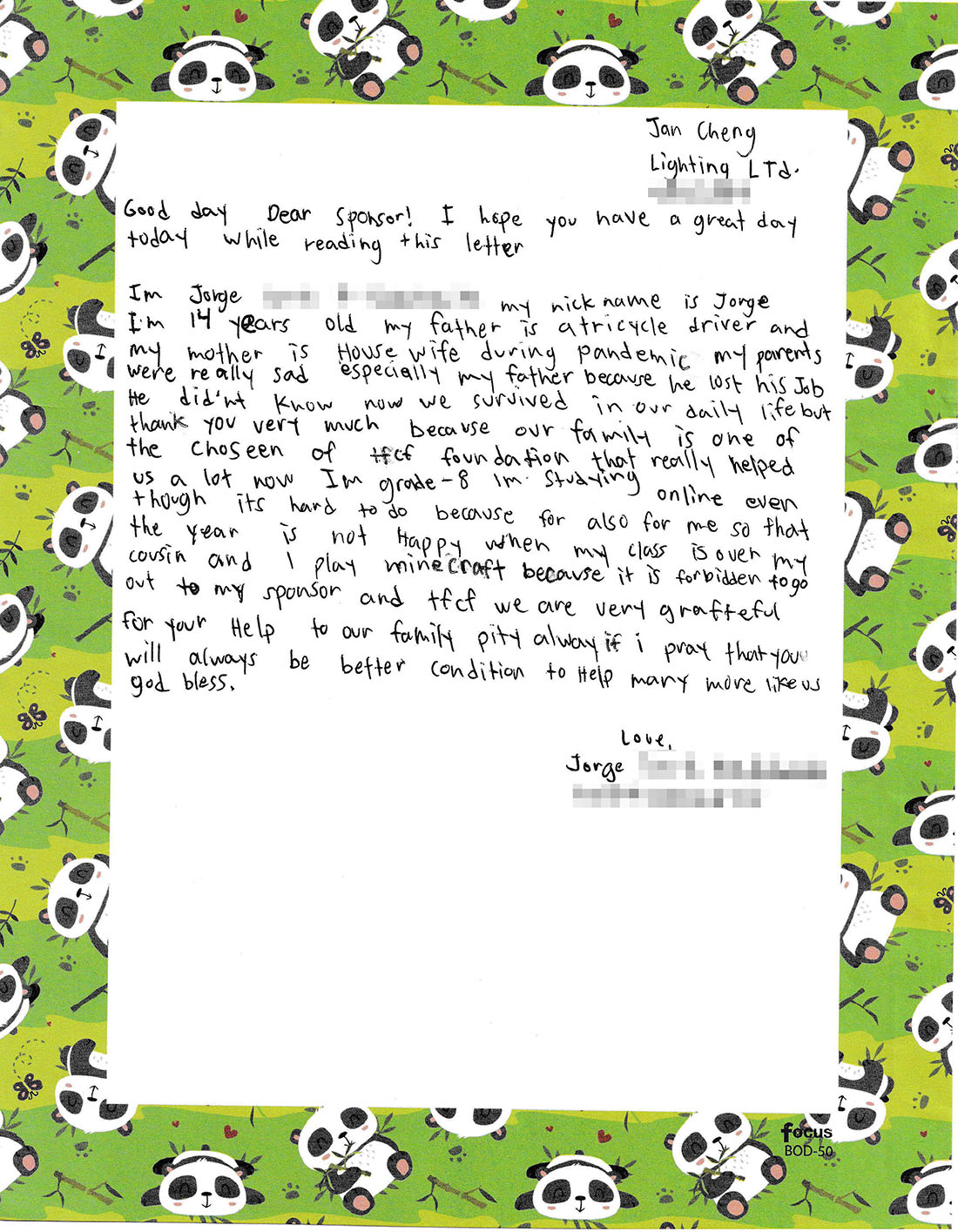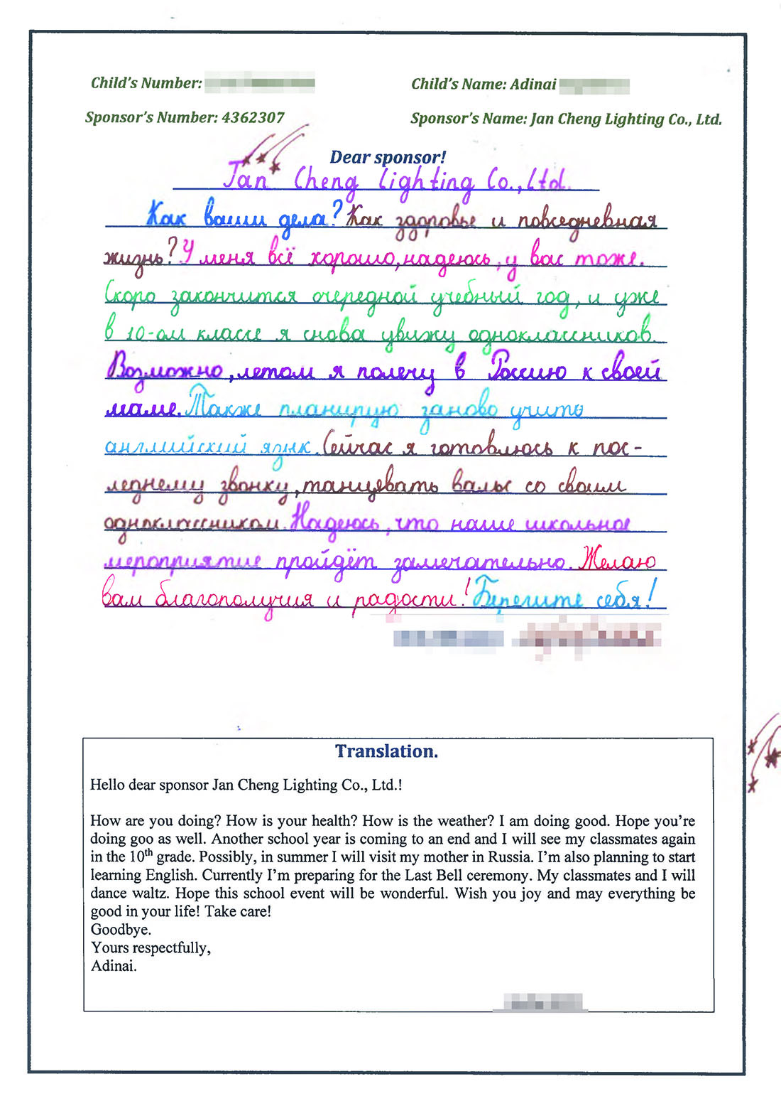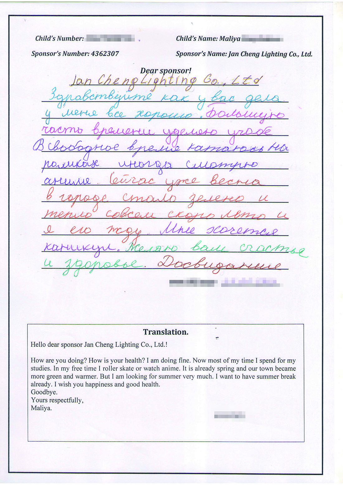 自2019年12月起透過家扶基金會的媒介,展晟照明認養30位來自約旦、柬埔寨等多個國家的弱勢兒童,藉由定期定額的扶助提供營養和醫療服務給貧童,讓他們接受普及教育,協助改善居家和社區環境,透過提供農耕器具、牲畜飼養等幫忙改善家計,為貧童帶來一線生機,有機會改變貧窮現狀,進而冀望未來。