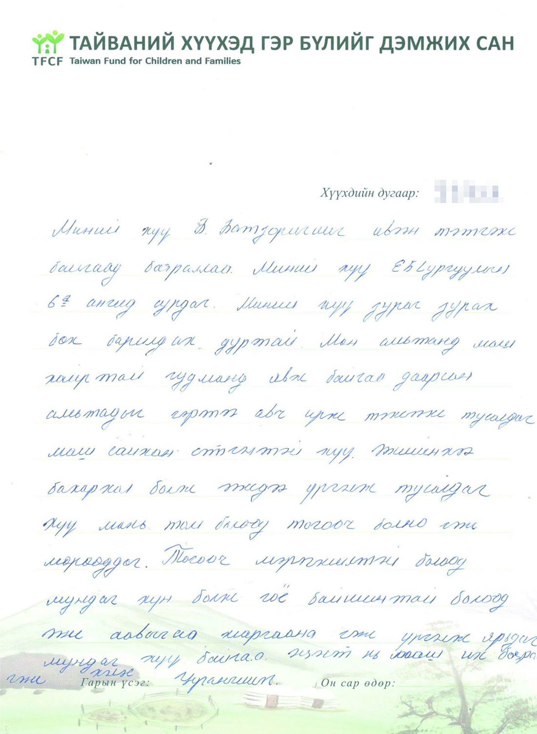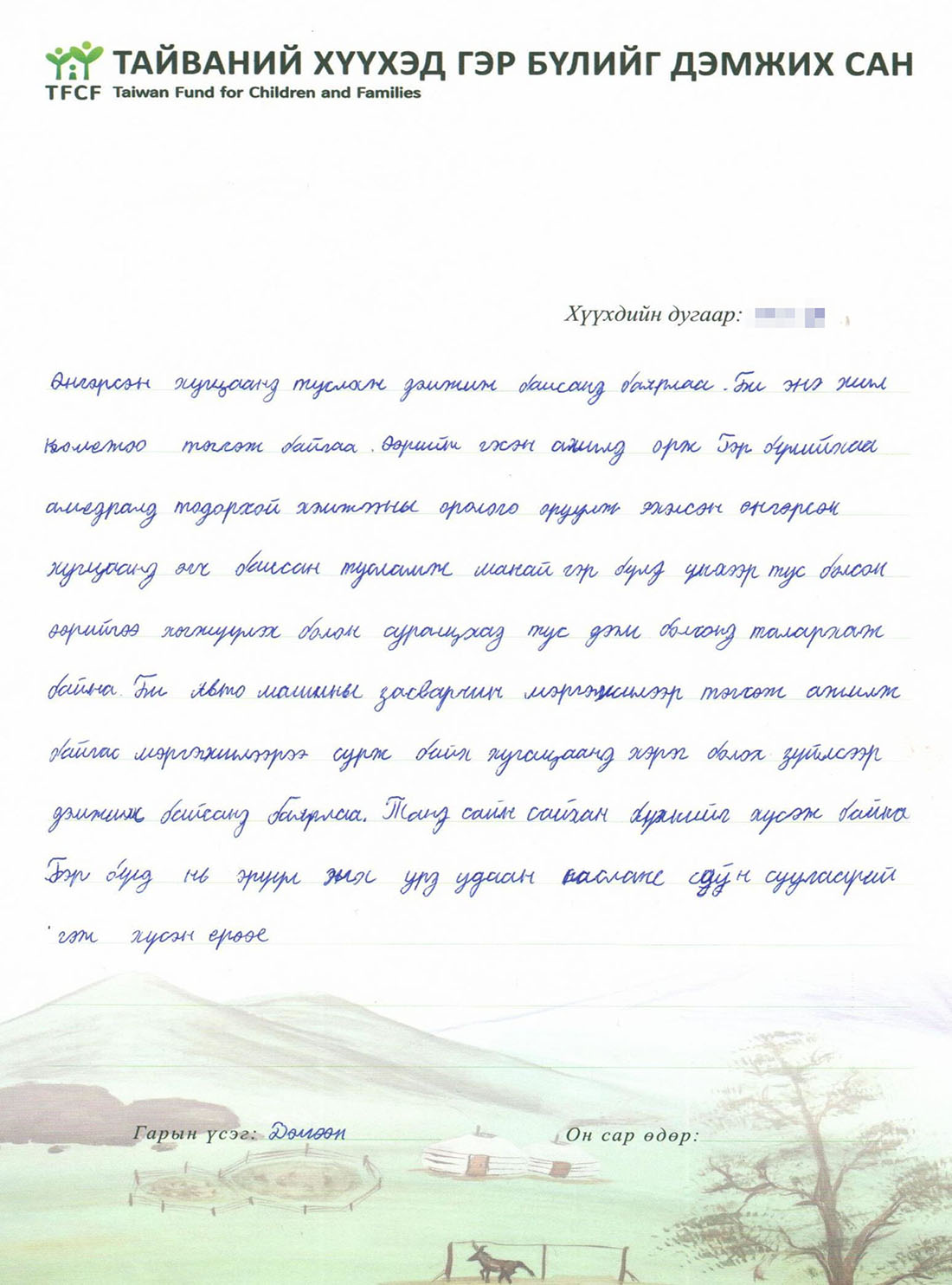 家扶基金會目前主要協助蒙古、柬埔寨、史瓦濟蘭、吉爾吉斯、越南等國的認養貧童,如蒙古逾1/3人口生活在貧窮線下,連安家的蒙古包都沒有,而吉爾吉斯是全亞洲貧窮國家前10名,兒童長期處於貧窮、缺乏醫療和教育資源等環境,且在攝氏零下40、50度的寒冬,缺乏禦寒衣物。