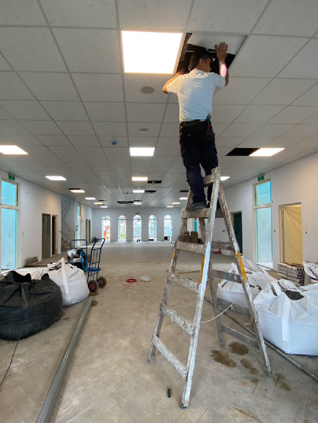 在燈具工程安裝階段,舞光團隊捐贈給全院所需燈具也陸續到位,在水電工師傅的精心安裝下,所有照明設備都已經順利完成安裝。