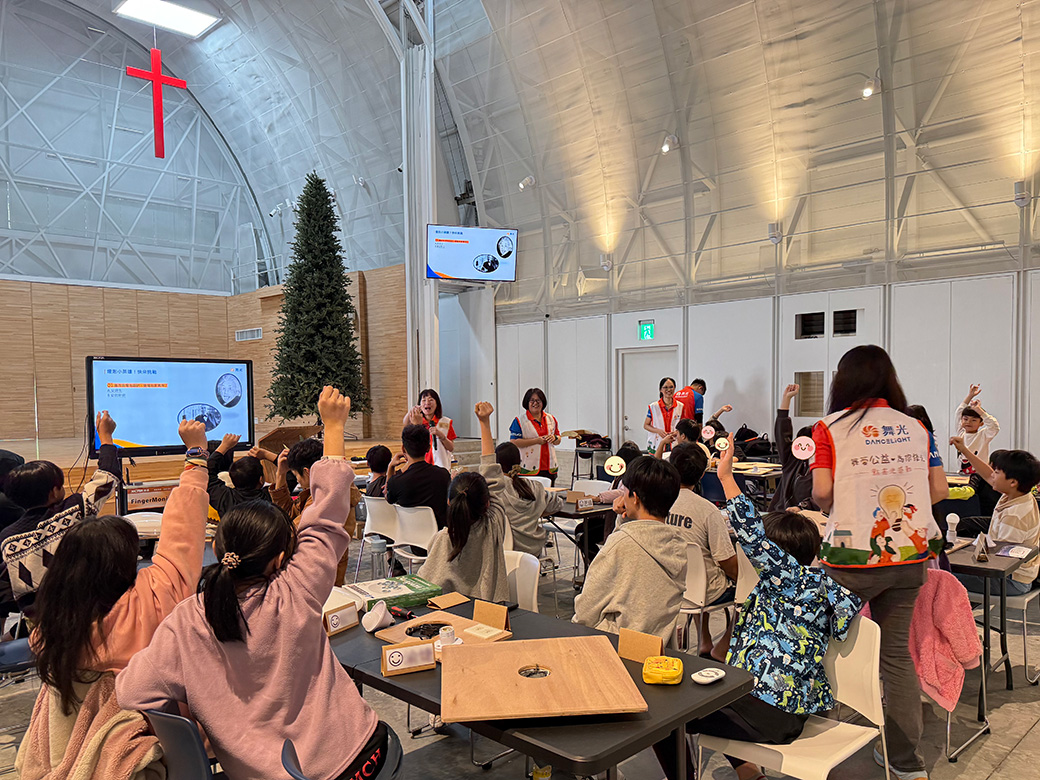除了實際的燈具捐贈與安裝,舞光也安排了一場為孩子們量身打造的「照明小學堂」——透過淺顯易懂又充滿互動性的教學,讓孩子們了解光的原理、照明的應用與生活中的節電知識。