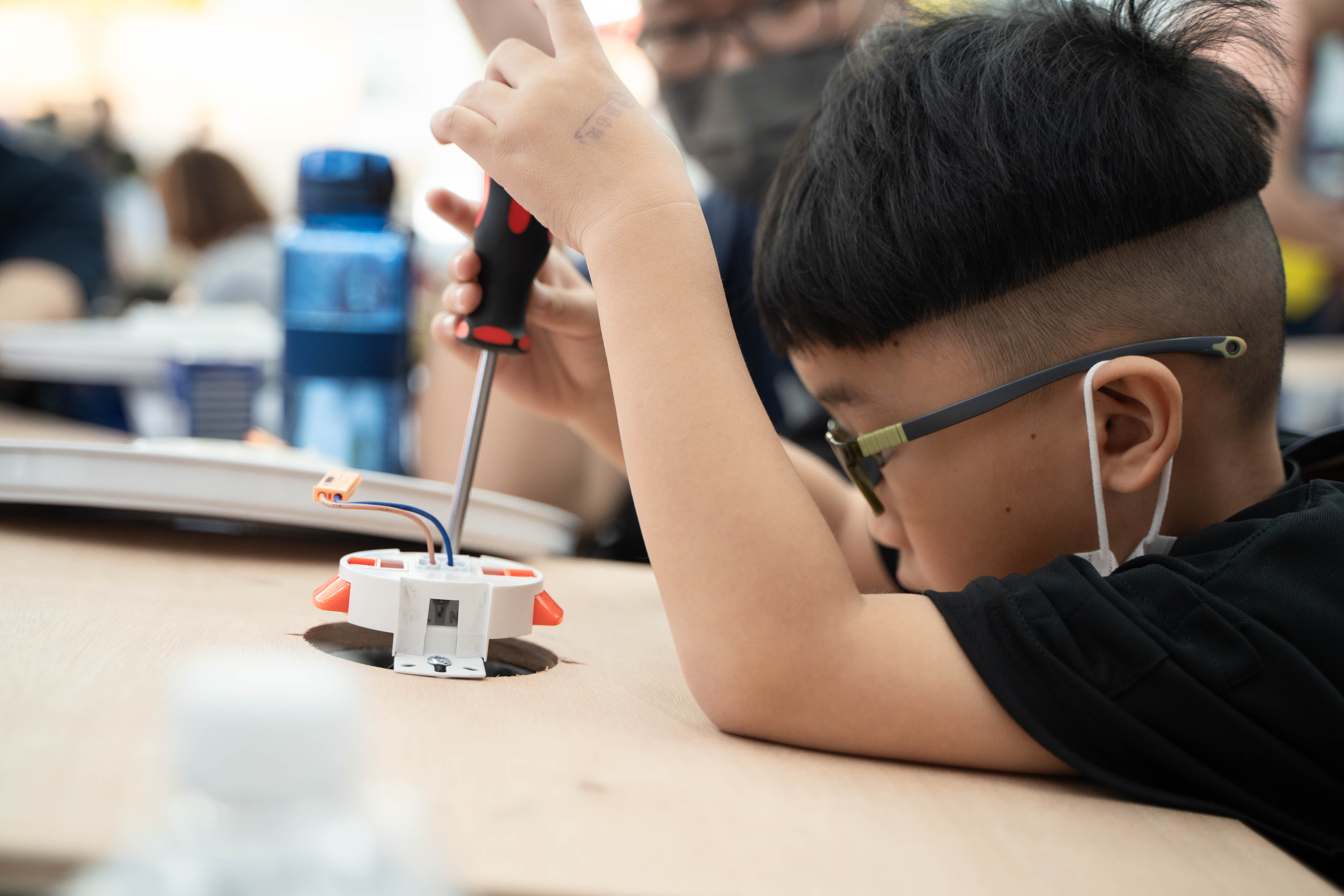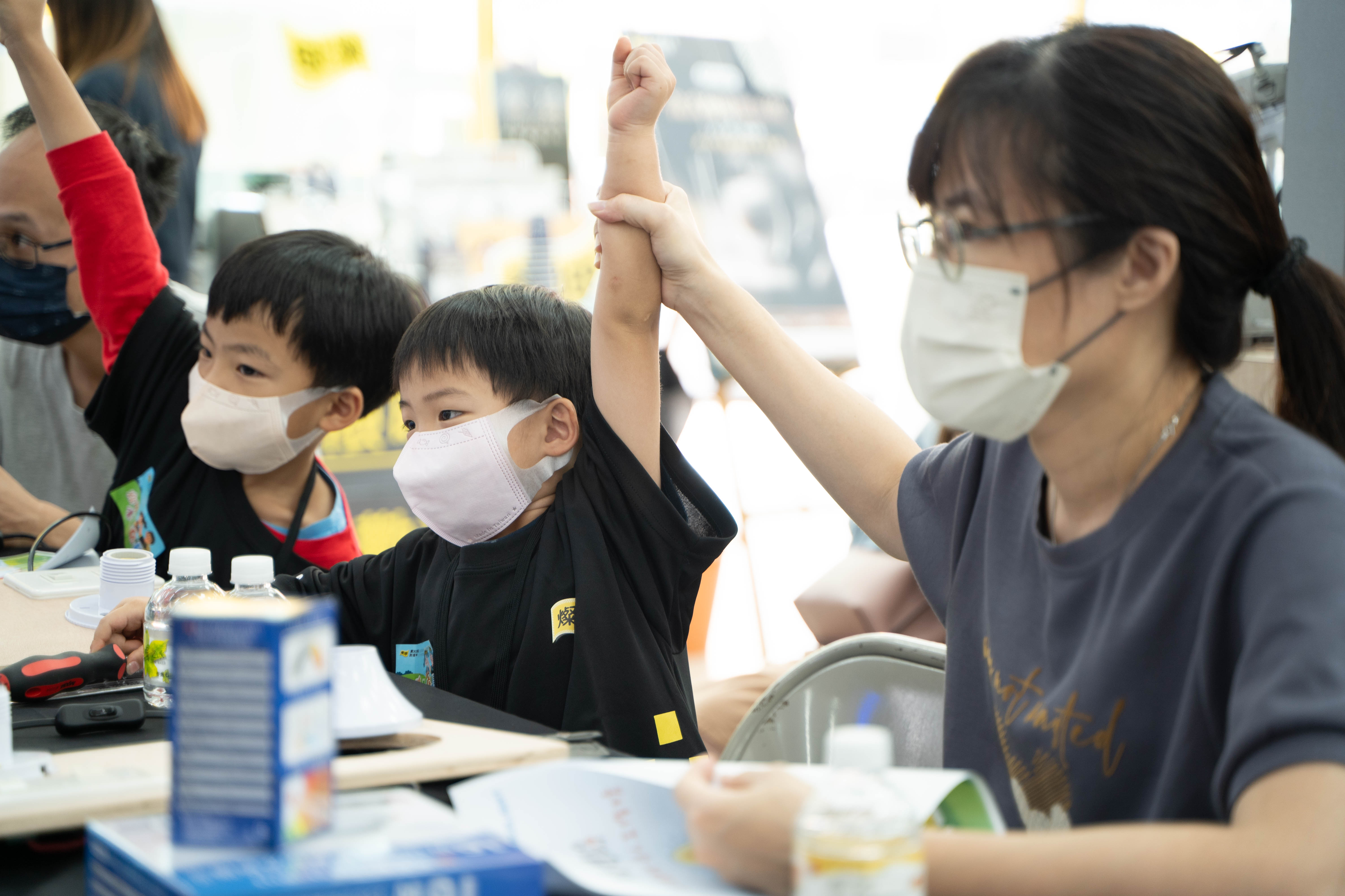 就是這些純真可愛的笑容,療癒了現場講師與工作人員!孩子們的快樂很簡單,也許只是舉手回答了正確問題,得到全場的掌聲與鼓勵;也許是一步步按照步驟完成安裝,看見燈點亮的瞬間就笑開懷。