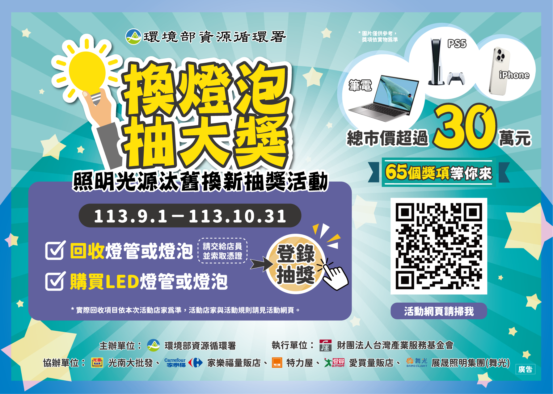 回收燈管或燈泡並索取回收憑證,且購買LED燈管或燈泡並索取發票+明細(或收據),即可登錄抽獎。
