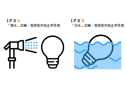 代表液體滲透防護程度,表示燈具防濕、防水進入的密閉性,防水等級分成0~8。