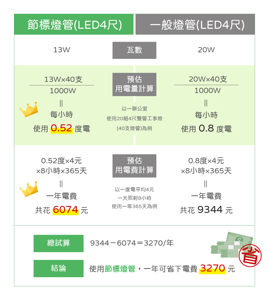 一般燈管和節標燈管哪裡不同?表格讓你秒懂!