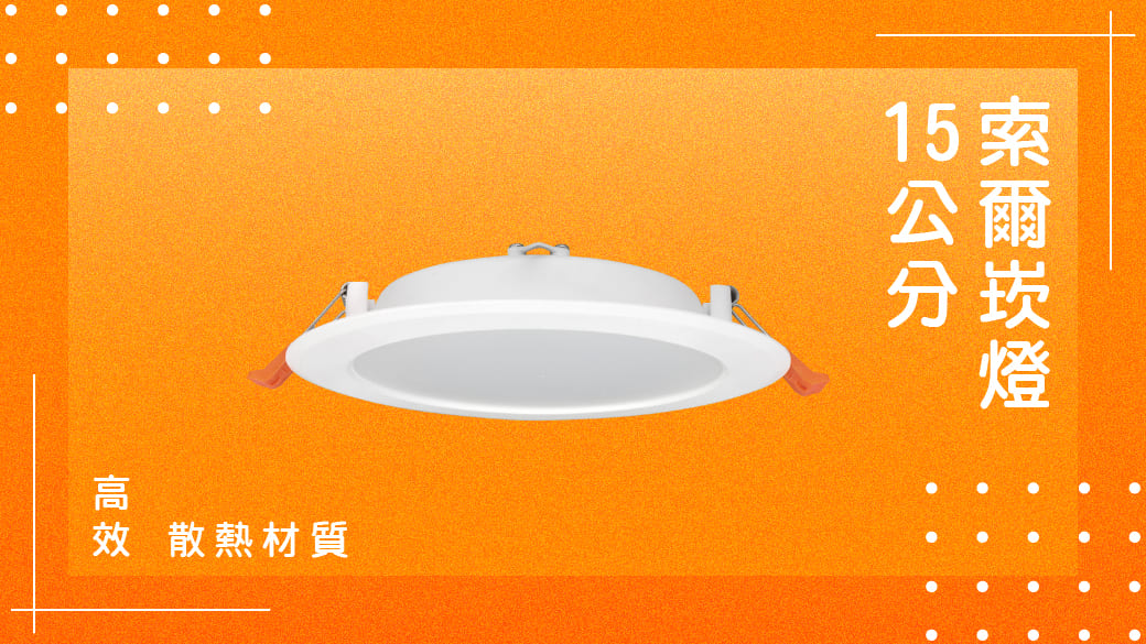 15公分索爾崁燈尺寸很適合運用在各種室內空間,像是餐廳、臥室、商辦空間等,選用均勻發光且高亮度的晶片,並有白光、自然光、黃光三色色溫可自由選擇,材質則是工業級散熱塑料,讓崁燈更耐用、壽命更長,是許多設計師推薦的一款LED燈!