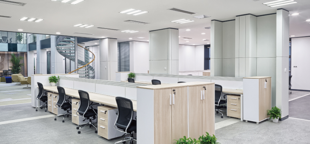 辦公區域常見使用色溫是白光,其中辦公室則建議使用自然光,使空間保持明亮又不過於刺激,無論是文書作業或長時間使用電腦,自然光都讓雙眼感受更加舒適。相較於辦公室,會議室更適合白光,光線中適量的藍光能使人保持精神以及提高專注力,間接提高工作及會議的效率。