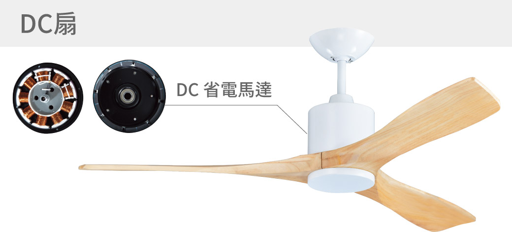 | 缺點 | 價格稍高 直流吊扇燈的風量較小 | 運轉分貝大 長期運轉耗電不節能 |
