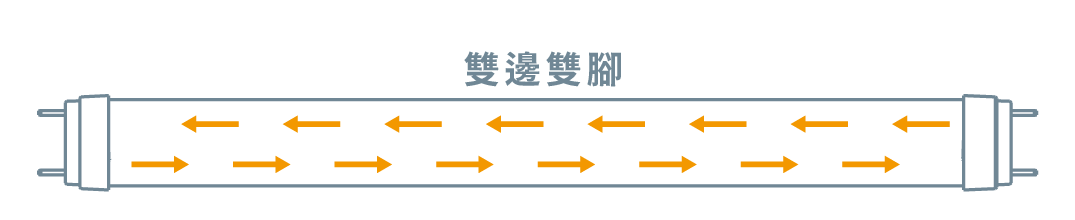 市面上LED燈管的入電規格有分為「單側入電」和「雙側入電」這兩種,正確挑選與燈具相配的燈管非常重要!若選擇不當,可能會導致燈管無法點亮,甚至發生短路情況。市面上已推出兩側皆可入電的燈管規格,如果擔心挑選錯誤,可以考慮選購雙邊雙腳燈管,確保相容性。
