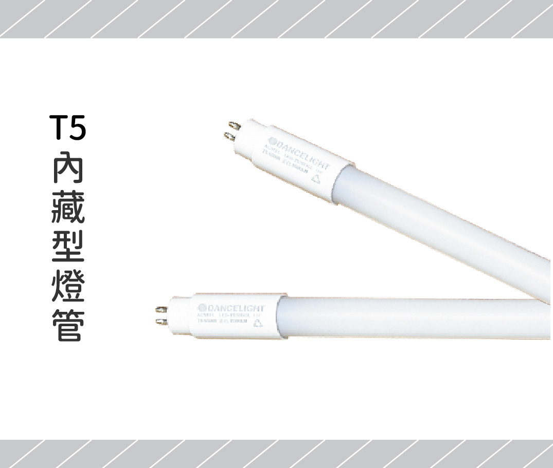 T5燈管尺寸的直徑約15.8mm,相對於T8的外觀更為精緻。在亮度方面,由於體積較小且電子及氣體的填充量較少,使得通電時的亮度相對較低,因此適用於對光線需求較柔和的環境,特別適合應用在居家環境和需要細緻光源的場所。此外,T5燈管採用稀土三基色熒光粉,能有效節約能源。
