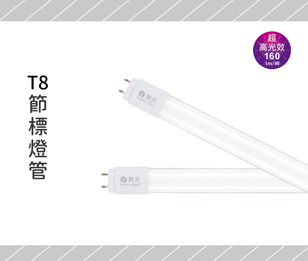 舞光的高光效燈管屬於《節能標章燈具專用》的燈管,採用T8型號,T8燈管擁有多種色溫選擇,從暖白光(3000K)到冷白光(6500K),可依不同場景需求靈活搭配。相較於T5應用更為廣泛,且T8燈管的安裝相容性較高,能直接替換傳統T8螢光燈管,減少燈具改裝成本,因此成為許多商業與工業環境的第一選擇。在相同長度下,LED T5燈管尺寸通常能提供較高的光效,相比之下T8可能略低一些,但隨著技術進步,這種差異逐漸縮小。
