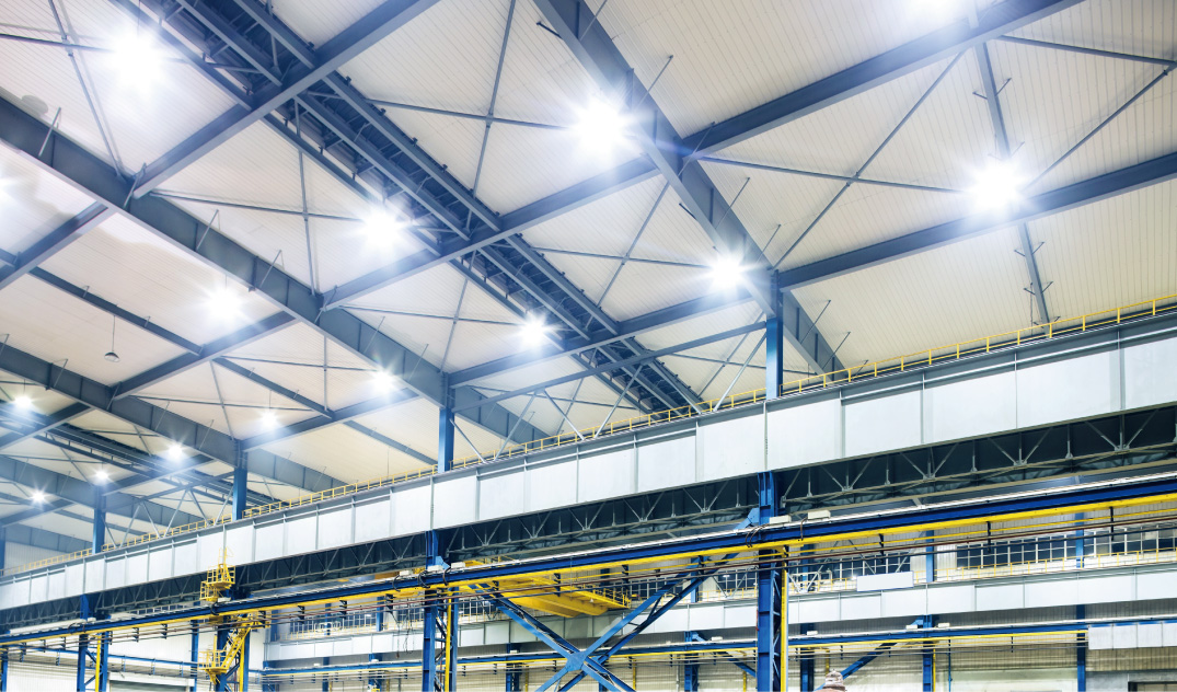 ● 高度10米以上空間:光通量建議26,000lm、200W的天井燈,適用樓層高度較高倉庫、體育館、機場或是大型工廠車間。