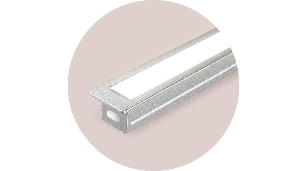 顧名思義,角落鋁槽燈具得益於牆角90度貼和設計,兩面的鋁槽本體加上固定釦,分別為1.8公分、1.7公分,可以安裝在室內空間角落,由於發光面廣、不受角度限制,可以在最小面積取得明亮視野,均勻打亮牆面空間,或者安裝在櫥櫃、層板。(立即購買