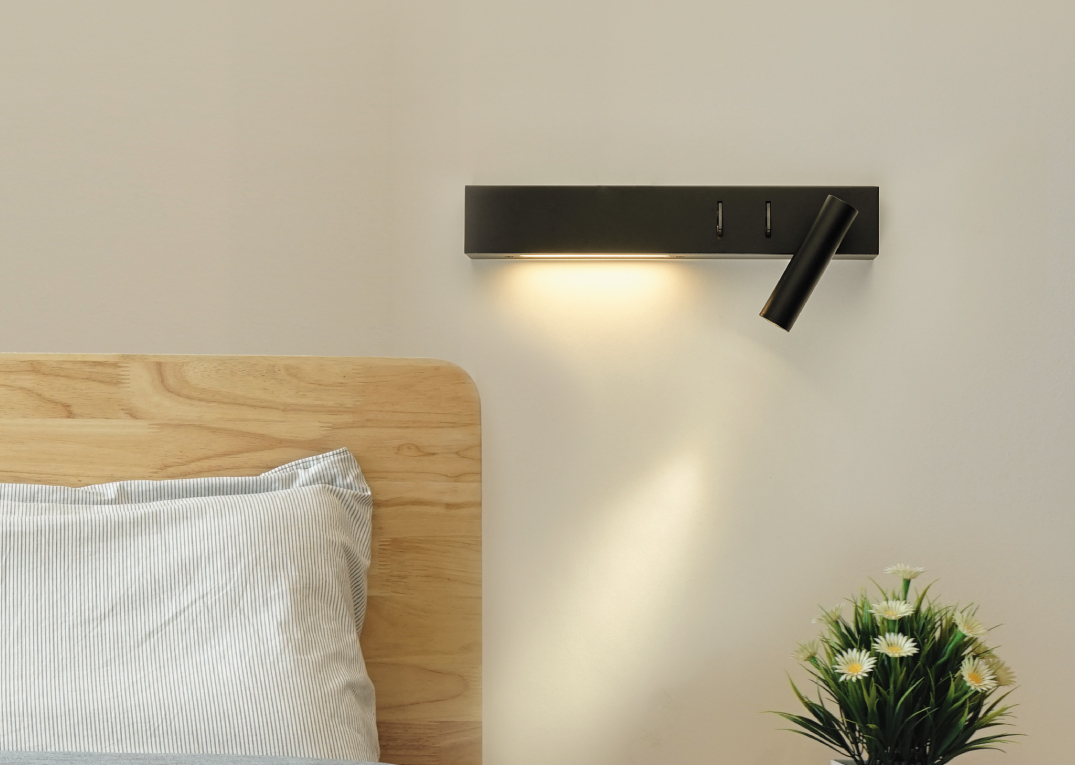 這款室內專用燈具適合配置在臥室,作為床頭燈,除了提供光源,同時也能營造氣氛。可調式燈頭設計,讓壁燈能依照個人需求去調整角度,最高可達330度!隨心所欲地點亮您的私人空間。更特別的是,還可搭配不同情境,改變壁燈光線,包括:光束較集中的重點閱讀光,以及光束較發散的環境光,還有同時兼具兩種優點的壁燈全亮模式。