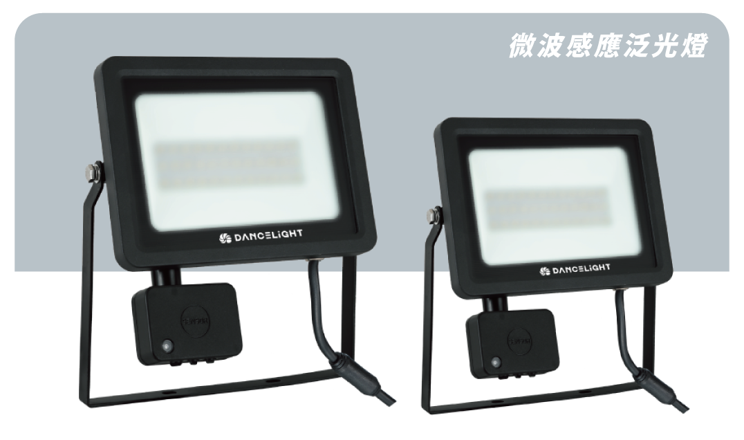微波感應泛光燈結合了先進的微波感應技術,可以偵測物體的移動自動亮燈,且不受環境與溫度影響,其防塵防水設計非常適合安裝於倉庫外圍或停車場,一般住家則特別適合裝設在騎樓或車庫,感應功能增加了燈具使用的便利性及效率。