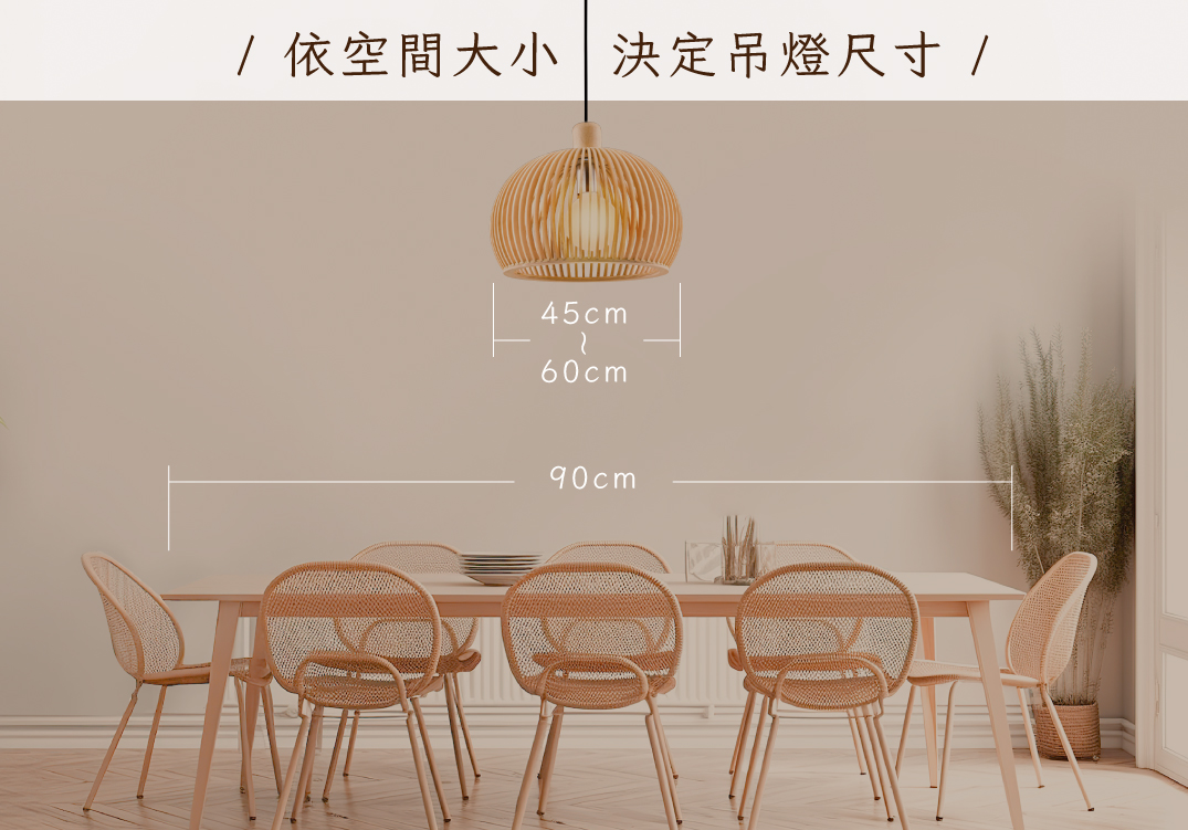 選購大廳或餐桌用的吊燈,不僅要關注燈具本身的外觀設計,更涉及到配置的細緻學問!選擇吊燈時,需考慮桌子的寬度和長度、周遭環境的亮度,並根據這些因素確定吊燈的高度、數量、吊線長度。此外,還要根據乘坐者的視線位置來安裝吊燈,以達到最佳效果。下方將詳細說明:
