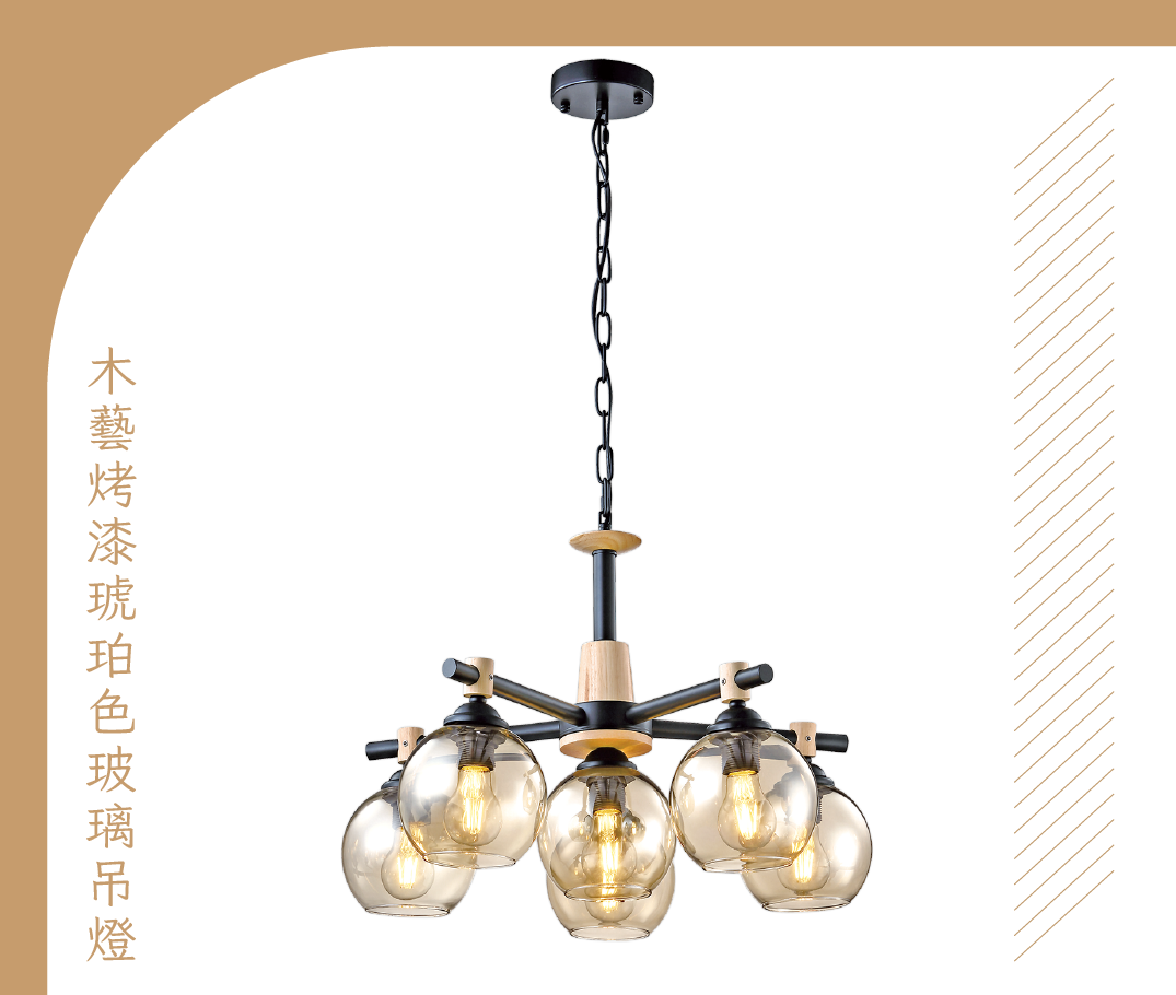 〈產品推薦:木藝烤漆琥珀色玻璃吊燈〉