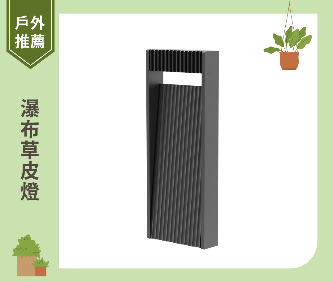 這款戶外燈具擁有俐落有型的簡約外觀,搭配完美斜度的波浪面板,能夠將柔和的光暈延伸出多層次的光影效果。順流而下的光線更增添了空間的氛圍,讓你的花園步道成為一道亮麗風景線!