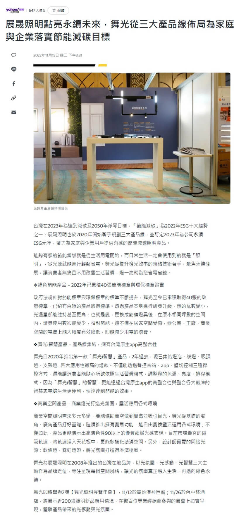 Yahoo|舞光從三大產品線佈局為家庭與企業落實節能減碳目標
