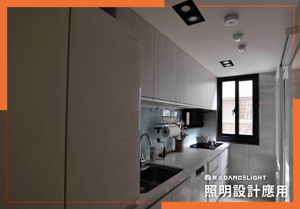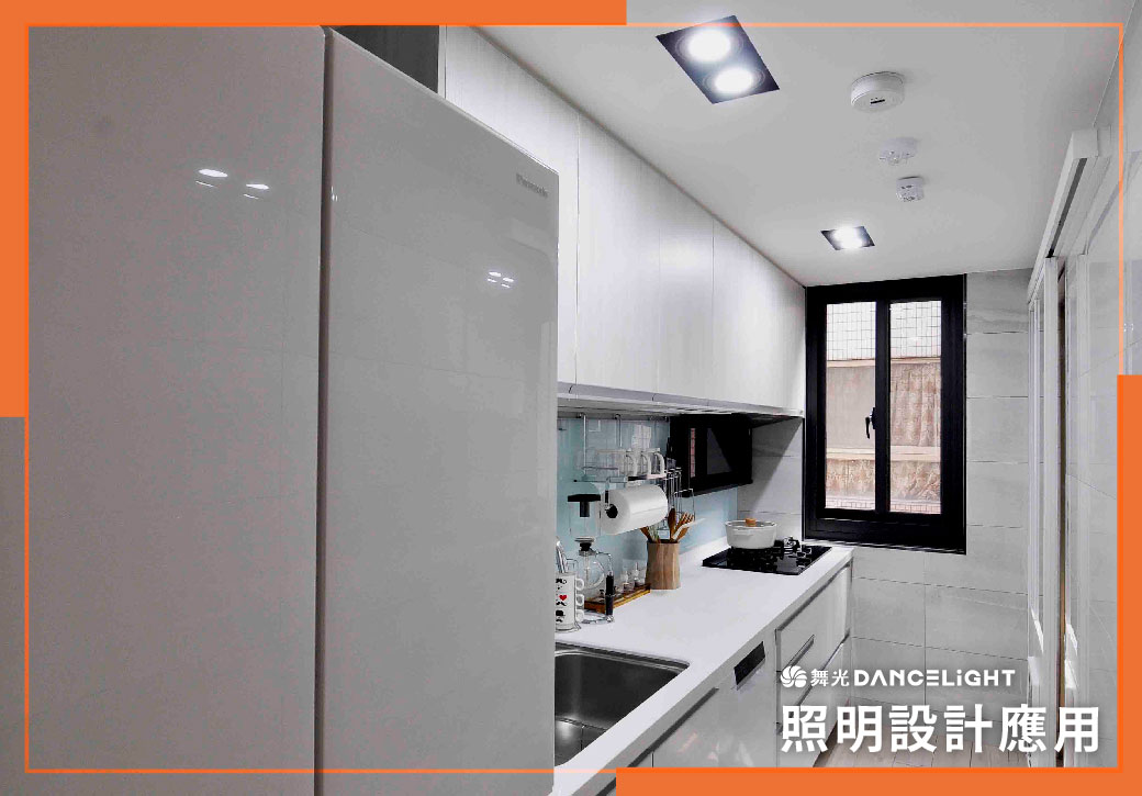 廚房是講究「功能性」的區域,因此在選擇廚房燈具時,亮度合適的燈光即為重點考量之一。廚房選用AR無邊框方型崁燈,可以依需求挑選合適的AR111燈泡,憑藉Ra90的高演色特性,讓屋主在料理時能清楚看到食材的真實顏色和新鮮度,讓烹飪過程也能成為一種愉悅的體驗外,也能讓備料過程更加安全。