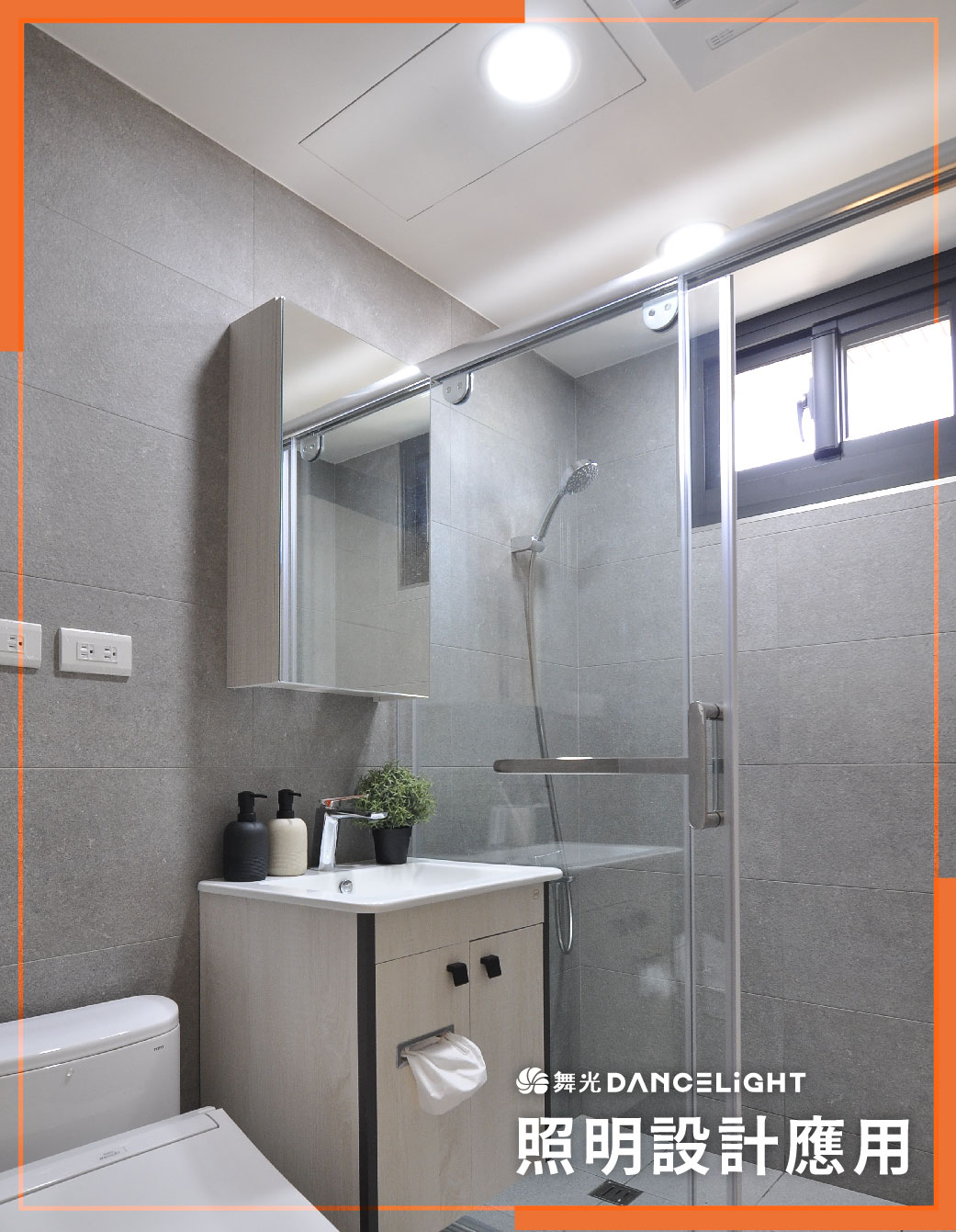 浴室則使用15公分索爾LED崁燈。索爾崁燈具備160度的發光角度,能提供均勻明亮且無頻閃的光線,讓衛浴空間更具安全感和舒適感。此款為一體成型的LED崁燈,散熱效果良好,能有效防止觸電。索爾崁燈的驅動器也配有快速接頭,未來3~5年如需要更換崁燈,屋主也能輕鬆自行DIY安裝!