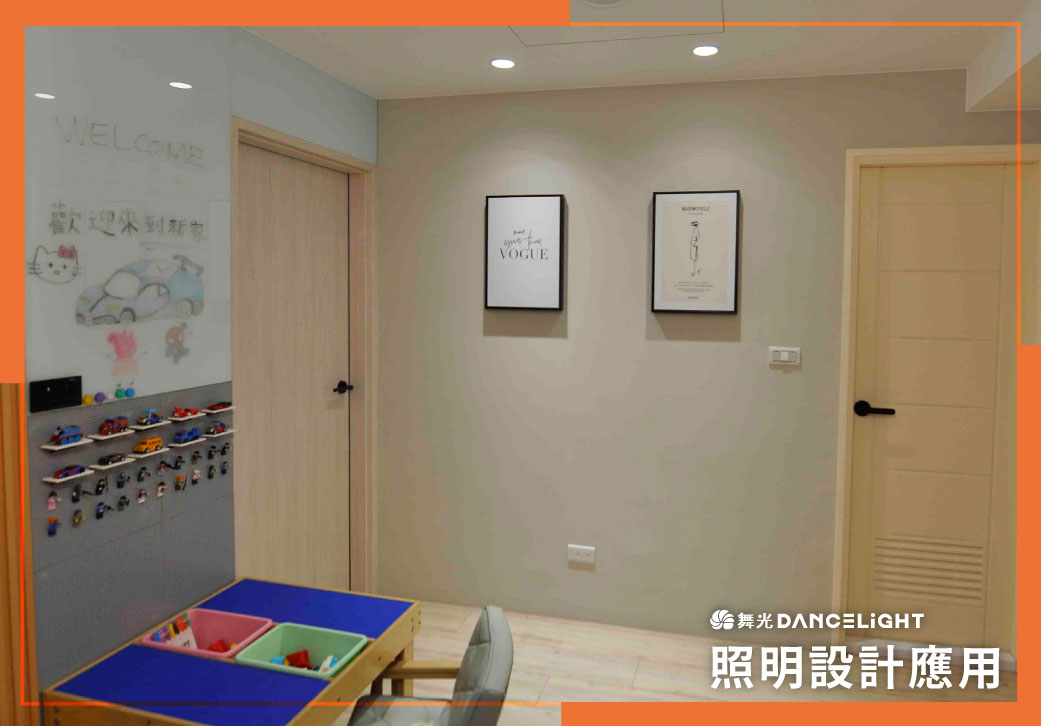考慮到屋主的兩個幼童,設計中特別規劃了遊戲區,並加入Lego板的童趣遊戲設計,讓孩子們即使待在家中也能發揮創意,在居家空間為他們創造一個小小的遊樂園。