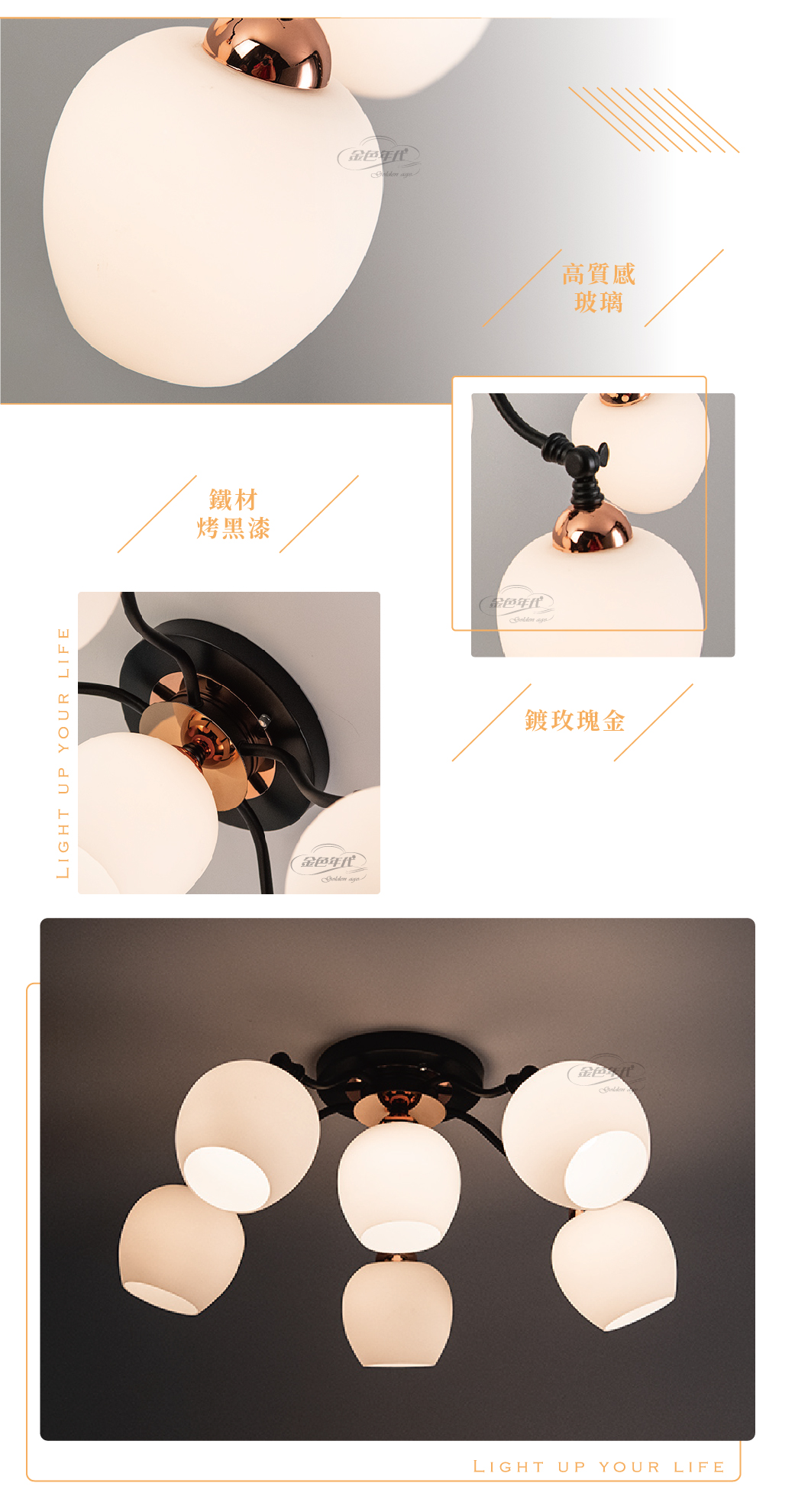 鐵材烤黑漆、鍍玫瑰金、玻璃
