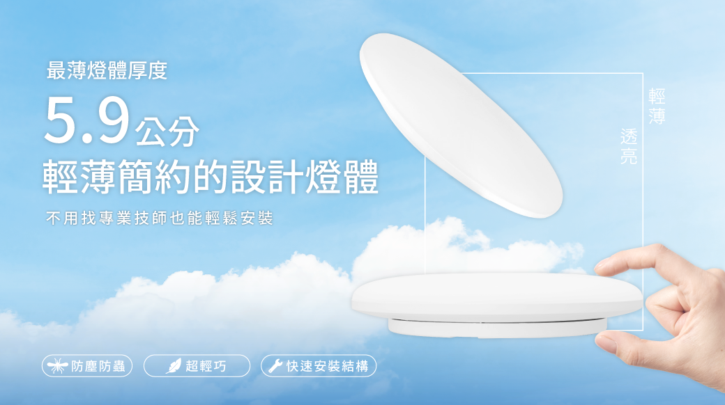 最薄燈體厚度5.9公分.輕薄簡約的設計燈體