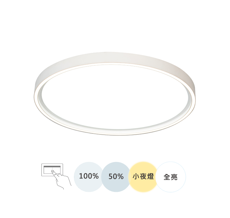 ✦ 四段壁切調光(100%-50%-外環夜燈-全亮)