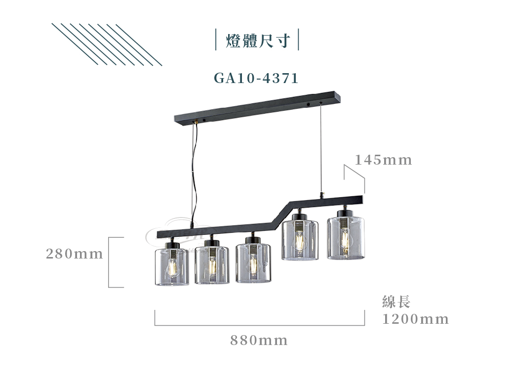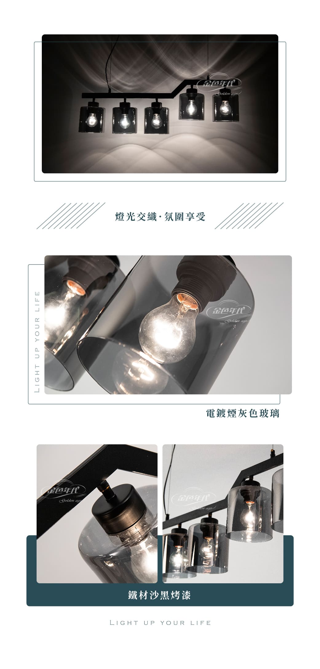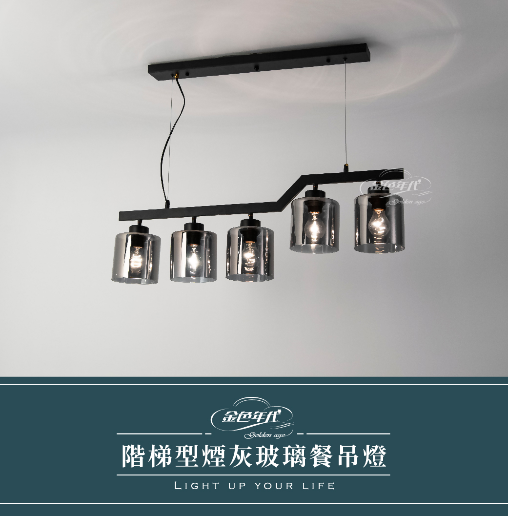 階梯型煙灰玻璃餐吊燈5燈,E27