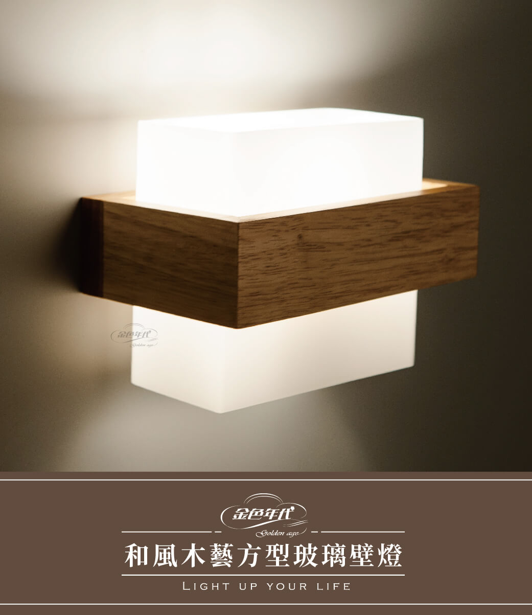 GA11-5938和風木藝方型玻璃壁燈