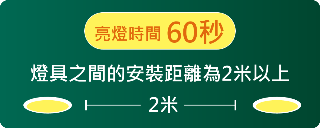 ※ 燈具之間的安裝距離為 2 米以上,避免互相干擾